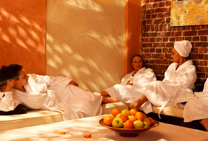 Ici, il s'agit de prendre son temps. Dans ce lieu intime et convivial, on évacue stress et toxines et le corps s'abandonne. Sous l'effet de la chaleur, la peau se ramollit, les pores se dilatent et le savon noir, enrichi en vitamines E, prépare la peau à l'exfoliation. Après une vingtaine de minutes, le soin, exécuté dans les règles de l'art, se pou